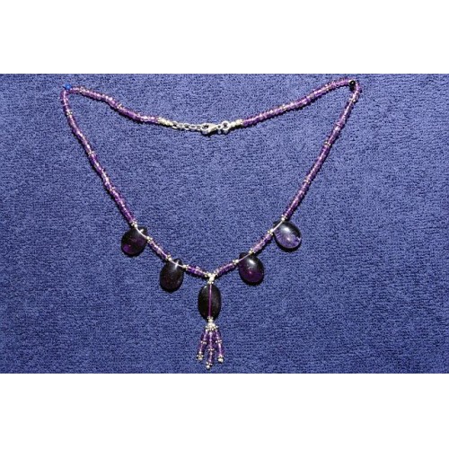 aufwendig gearbeitete Edelsteinkette mit Amethysten , weiterhin sind 925 Silberelemente in dieser schönen Kette verarbeitet Länge: 44,05 cm Verschluss: 925 Silber