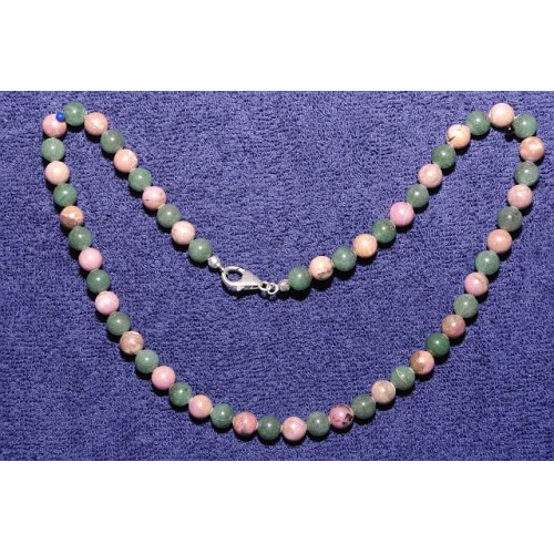 aufwendig gearbeitete Edelsteinkette mit Aventurin und Rhodonitkugeln 8 mm Länge: 50 cm Verschluss: 925 Silber