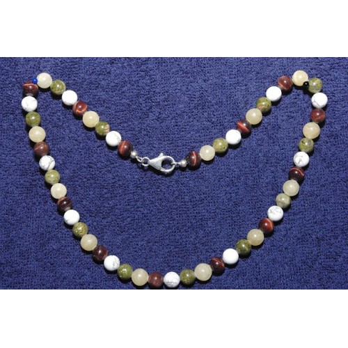 Gemstone necklace with Hawk Eye, aragonite, Unakite, magnesit