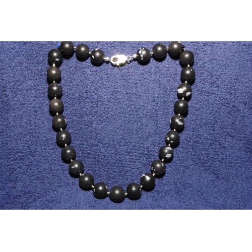 elaborately crafted gemstone necklace with snowflake obsidian beads 16 mm Length: 52 cm Closure: 925 silver